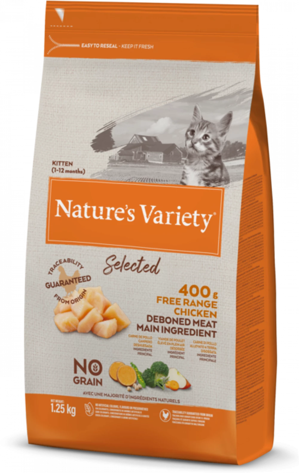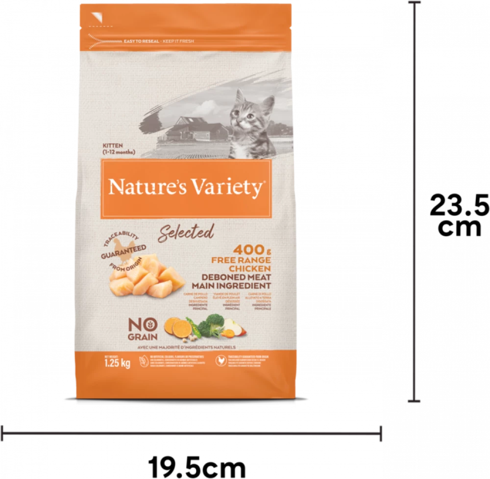 Nature’s Variety Selected Dry kitten food is a complete and balanced, natural meal specially formulated to support your growing and developing kitten. Made with quality boneless free range chicken as the main ingredient, blended with wholesome fruit and vegetables in perfectly sized pieces for kittens.